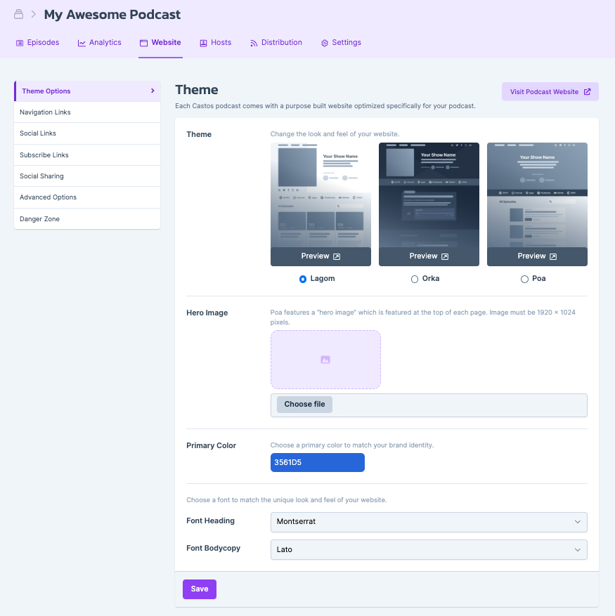 If you don’t have a website and find it too technical to build one, there is nothing to worry about. Castos offers personalized podcast webpages for all your podcasts. There will be multiple sub-pages on the website with detailed information about podcasts, episodes, and the host.